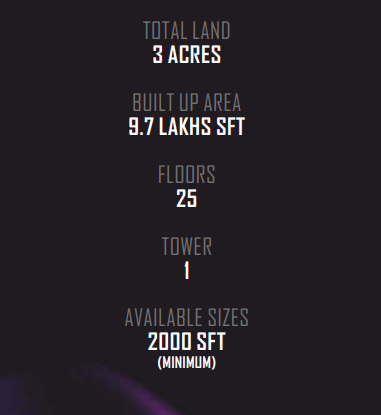 EXTENT – 3 ACRE.Class A-Corporate Spaces.25 Floors.Starting Areas 2000 Sq Ft.